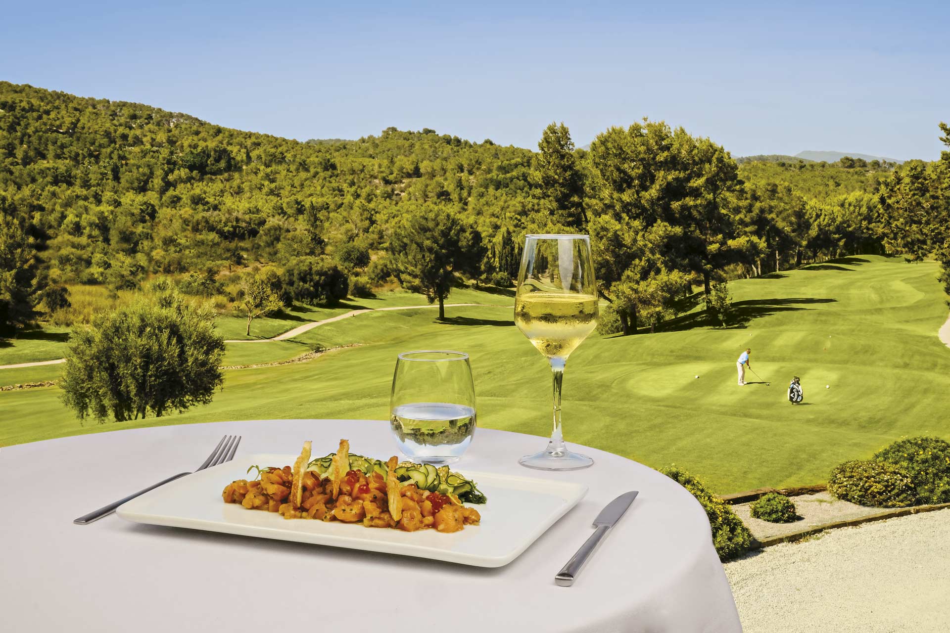 No es necesario ser aficionado al golf para disfrutar de uno de los restaurantes más singulares de la isla. El único requisito indispensable es saber apreciar la buena mesa, y la belleza de un entorno bien cuidado y apacible todo el año en cualquier momento del día.